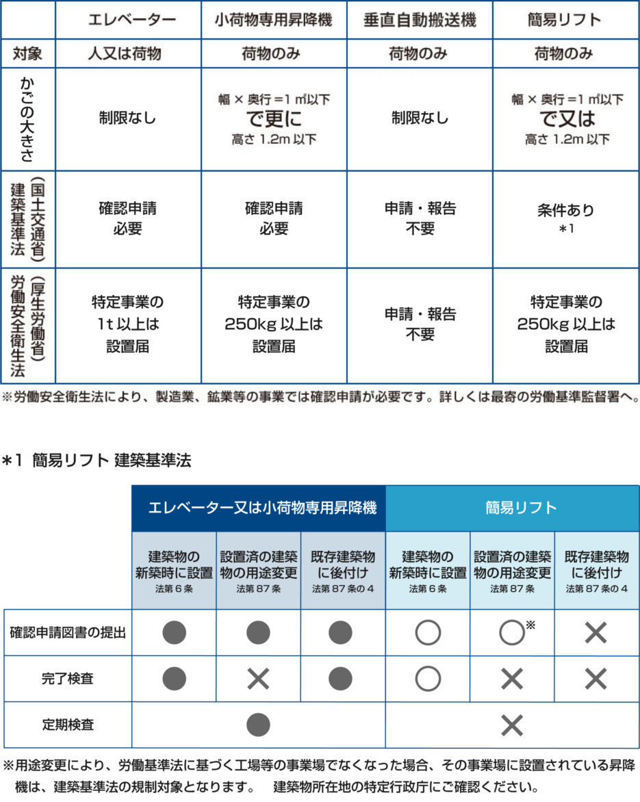 この度の改正で、簡易リフトが昇降機関係規定の適用対象から除外されました。